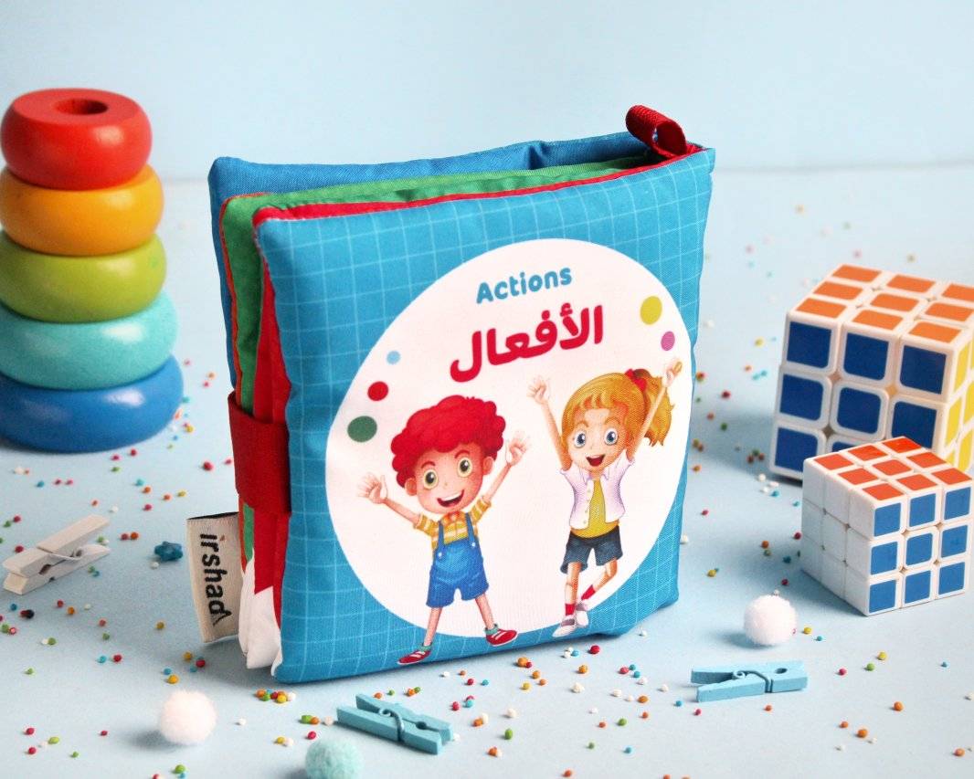 الكتاب القماشي Soft Book – الأفعال – الكتاب القماشي التعليمي.. للأطفال في الأعمار المبكرة المنتج عبارة عن كتاب تعليمي قماشي للأفعال يمتاز برسوماته و صوره الرائعة لتنمية الإدراك و الإكتشاف لدى الأطفال من عمر مبكر. و هي منتجات آمنة على الطفل وتدوم لأجيال وأجيال .. قابلة للغسيل و تحافظ على ألوانها .